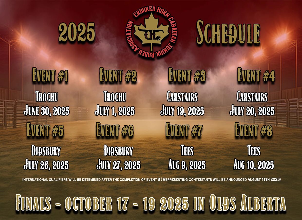 During the 2025 season the members will compete for season leader, which will be determined by total accumulated points after the 8 events. Upon completion of our 8 events the season standings will determine which members will represent CHCJRA at the Junior National Final in Las Vegas, The Junior Roughstock National finals in Arizona, and the IMBA finals in Ogden Utah. We are looking into getting tied event qualifiers for international events.